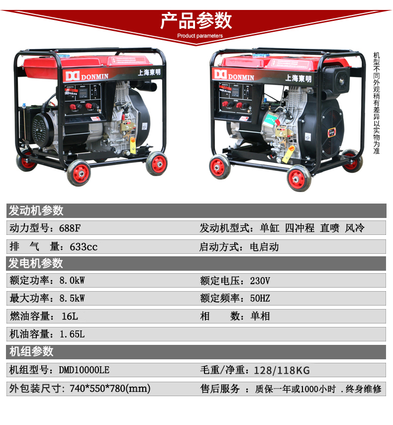 上海東明8KW 8000W小型柴油發(fā)電機(jī)組DMD10000LE