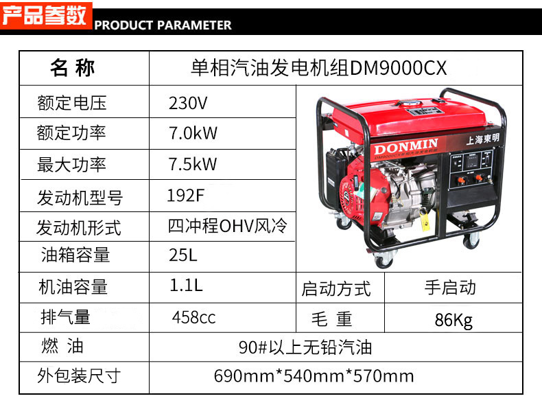 * 表示必填采購:單相7kW小型汽油發(fā)電機(jī)組DM9000CXD