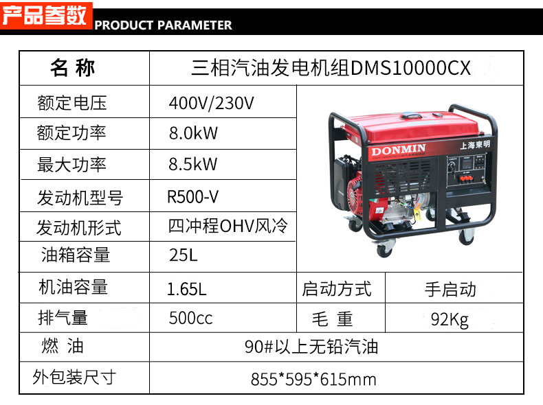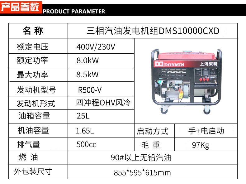 三相8KW汽油發(fā)電機(jī) DMS10000CX/D